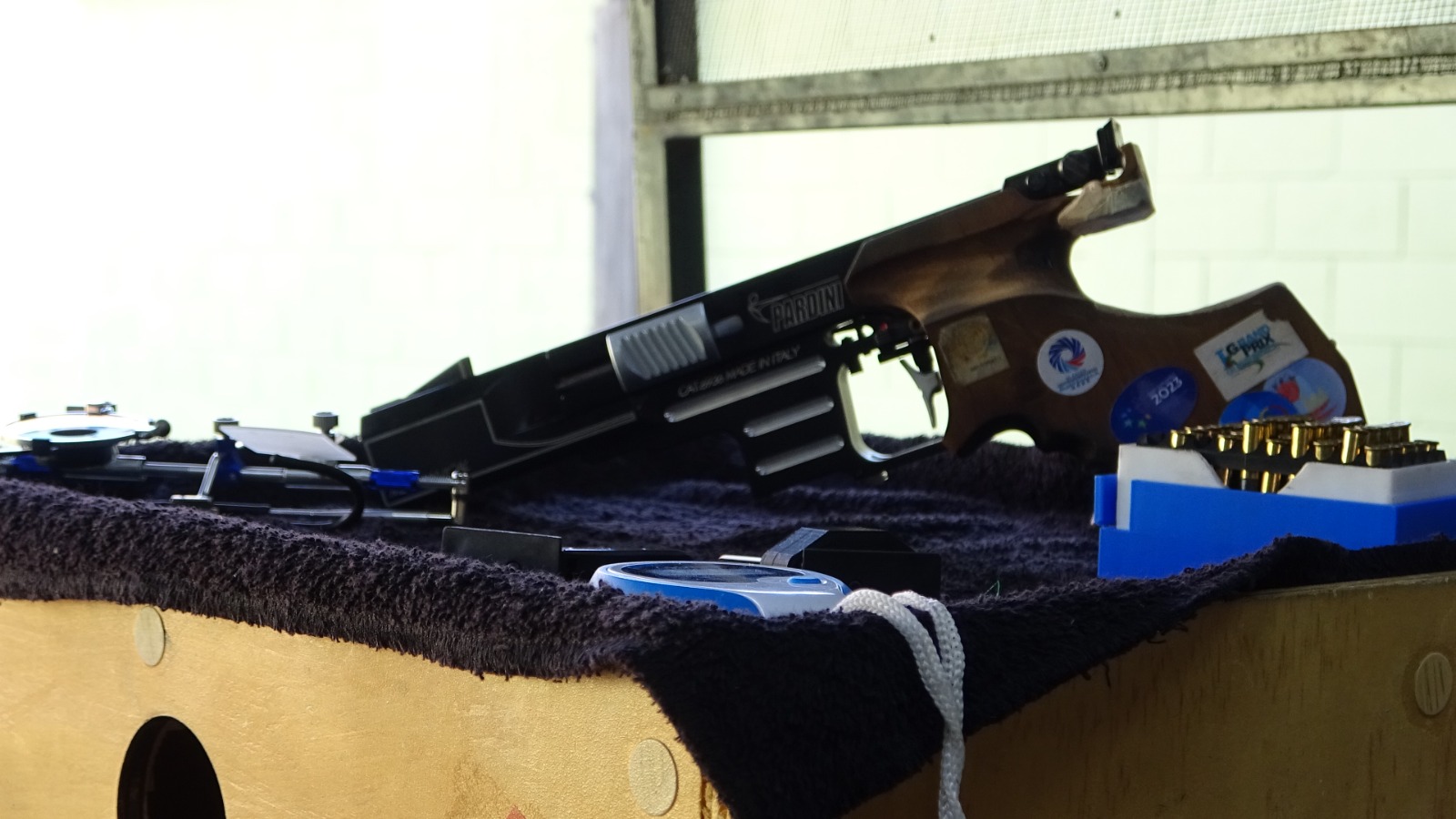Esta modalidad tiene las dos categorías: masculina y femenina. Con una pistola de aire comprimido calibre 4,5 mm y peso del gatillo a 500 g.